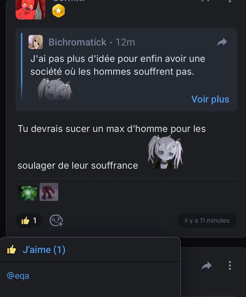 J'ai pas plus d'idée pour enfin avoir une société où les hommes souffrent pas.