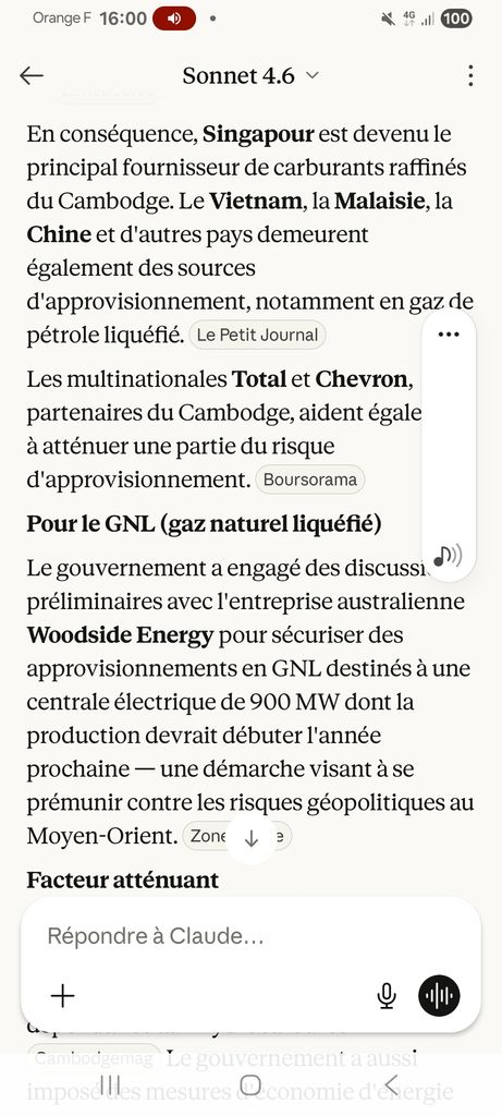 Depuis la guerre en iran , thailande et vietnam refusent de partager leurs gaz et petrole avec le Cambodge. Mais pas grave , singapour partage son pétrole et gaz raffinée au Cambodge , et singapour a un contrat exclusif pour gaz et petrole acheté a l’Australie.