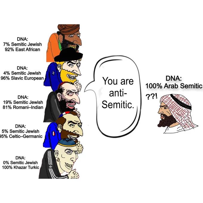 Sans parler que les sémites sont pas tous des juifs (guerre avec des sémites musulmans et juifs sémites), que les juifs ont diverses origines ethniques à nos jours, on ne peut parler d'antisémitisme pour parler d'idéologie juive, ce n'est pas d'ethnie quand on sait que ce qui va lier les juifs, ce n'est pas une identité ethnique précise mais bien une idéologie religieuse avec des lois dont on dit que cela vient d'un dieu. L'idéologie juive rassemble les juifs pas par leur sémitisme vu que tu as des juifs turcs, juifs noirs africains, juifs slaves, juifs occidentaux. Leur aspect non tolérant se fait surtout dans le cadre juridique où les non juifs sont vus comme des égarés et qu'ils ne doivent pas avoir des lois similaires à ceux des juifs qui sont vus comme élus divins en suivant la Torah. Donc la tolérance envers les juifs est à sens unique dans leur demande alors que leur propre idéologie n'est pas dans la tolérance du non juif à égal sur le plan juridique, sans parler des problèmes de rituel sur des enfants, brit milah pour une croyance.