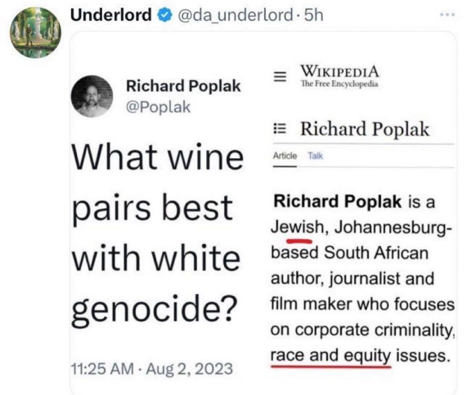 Cet OCCIDENTAL allié des Blancs se demande quel vin parfait pour accompagner le génocide Blanc