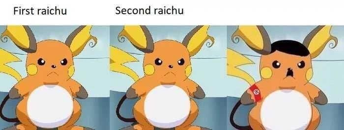 "Raichu" de son vrai nom Reichu, le pokémon nazi, sa queue a la forme du S de SS. Sacrés japonais