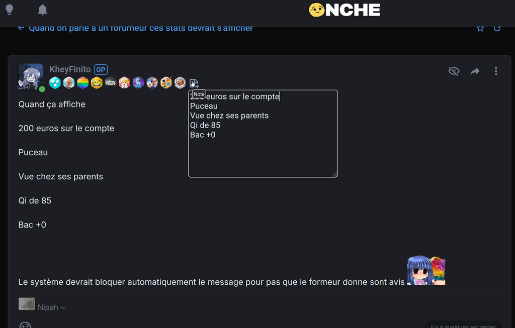 Le système devrait bloquer automatiquement le message pour pas que le formeur donne sont avis