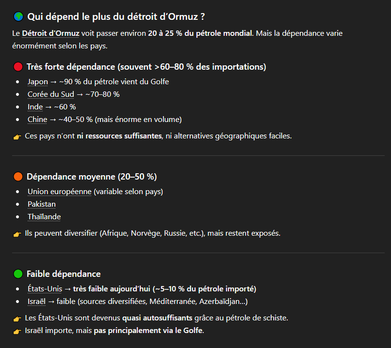 Pourquoi les iraniens bloquent le détroit en prenant en otage la planète entière et l'économie mondiale alors que les USA et Israël sont parmi les moins dépendant du détroit d'Ormuz ?