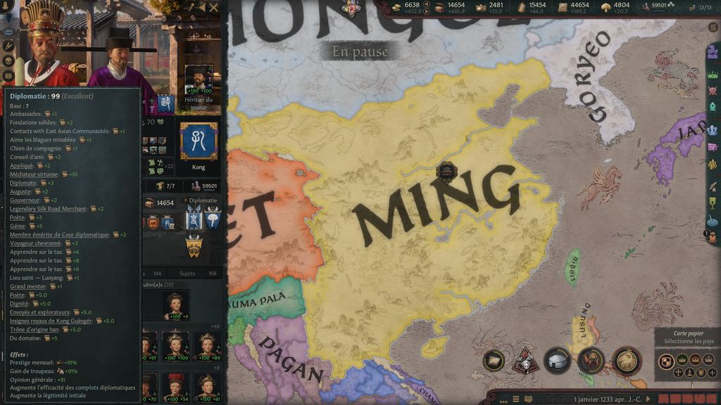 Lol j'avais jamais remarqués les descendants de confucius, tu les trouves où ? Et comment tu fais pour avoir 100 de dip ?
