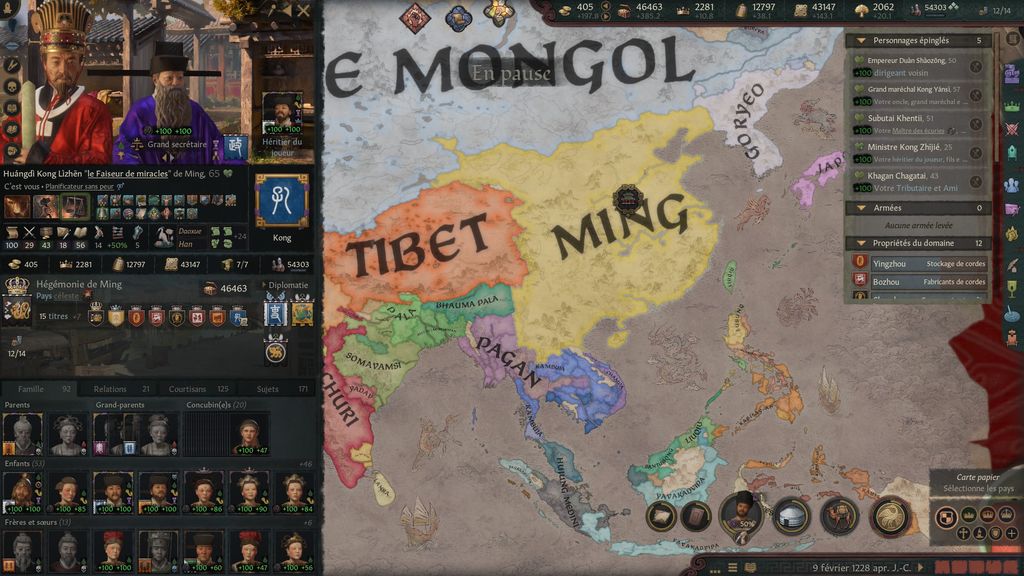 (100 en diplomatie, Chagatai qui est mon ami ET tributaire malgré que j'avais tué Gengis Khan en lui envoyant des poèmes shitpost, il est mort d'anxiété à cause de moi)