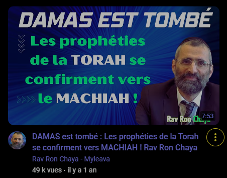 DAMAS est tombé : Les prophéties de la Torah se confirment vers MACHIAH ! Rav Ron Chaya