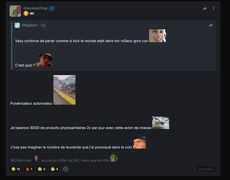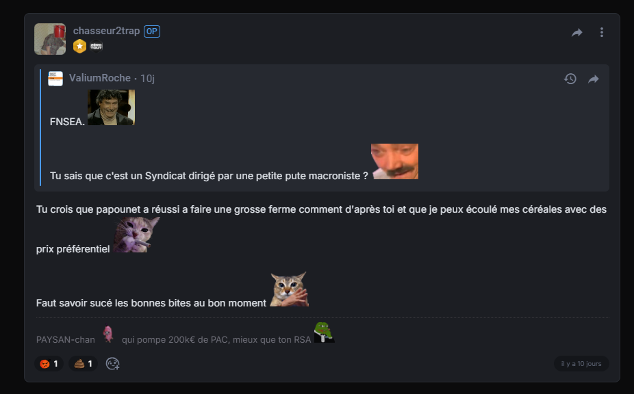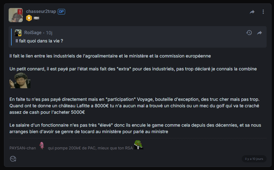Mais c'est pas inintéressant ce que tu racontes sur la FNSEA et la corruption des fonctionnaires