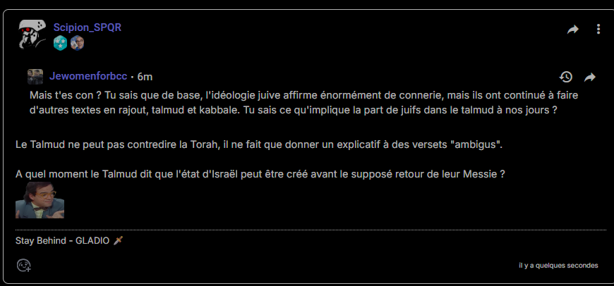 Mais t'es con ? Tu sais que de base, l'idéologie juive affirme énormément de connerie, mais ils ont continué à faire d'autres textes en rajout, talmud et kabbale. Tu sais ce qu'implique la part de juifs dans le talmud à nos jours ?