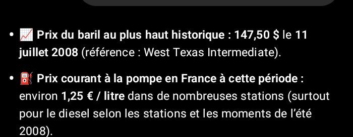 L'enculade du prix c'est les taxes sur les carburants en France, à ça tu rajoutes le prix qui augmente avec la rareté ...