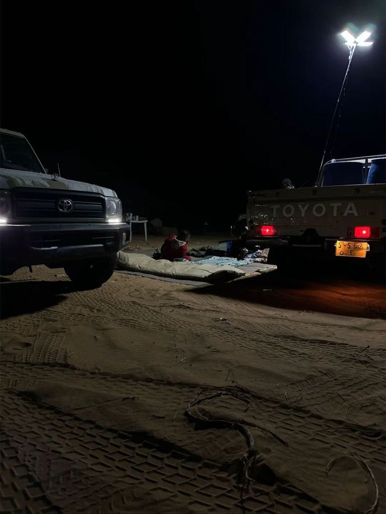 Chicha dans le désert, Adossé sur sa Toyota Land cruiser