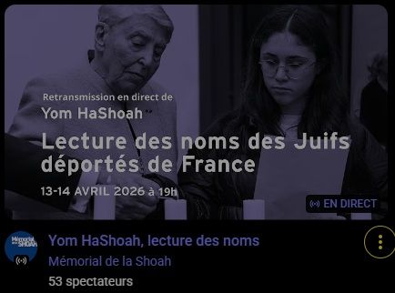 À l’occasion de Yom HaShoah, date retenue par l’État d’Israël pour la commémoration en mémoire des victimes de la Shoah et des héros de la Résistance juive pendant la Seconde Guerre mondiale, se déroule une lecture publique ininterrompue de 24 heures, de jour comme de nuit.
