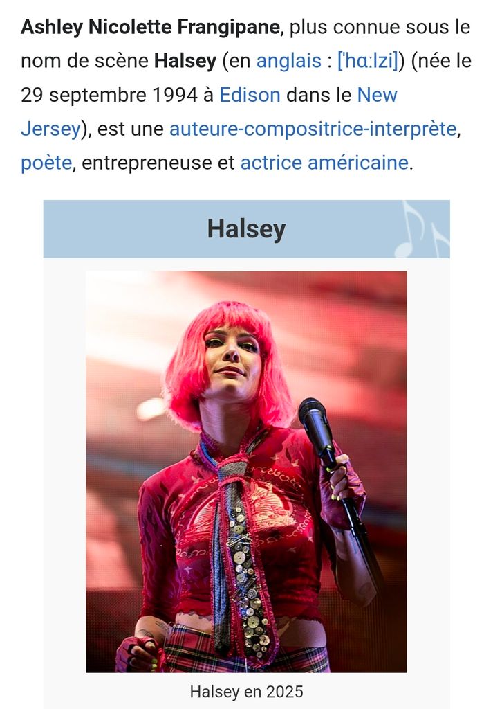 Ayaaaa le nom de famille de la célèbre chanteuse Halsey