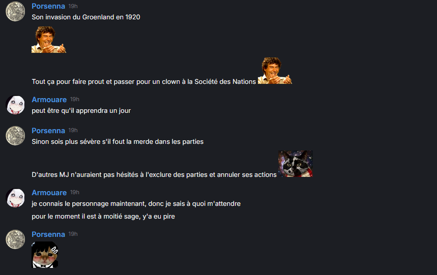 Que @Armouare m apprécie pas trop c est pas nouveau, ça change rien au fait que s il me critique c est en privé pas en public comme toi et ça reste un MJ correct puisqu il lead la partie en dehors de son affect personnel c est ce qu on attend d un bon MJ justement