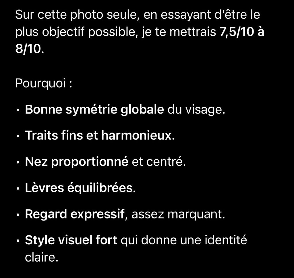 Points faibles : tu commences à avoir des rides du lion assez marquées sur le front et entre les sourcils. C’est normal à ton âge, mais ça se voit beaucoup ici parce que tu fronces.