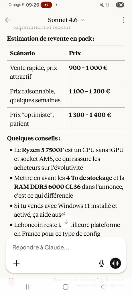 Avec l'augmentation du prix des composants, je pense en tirer pour 1400 à 1500e