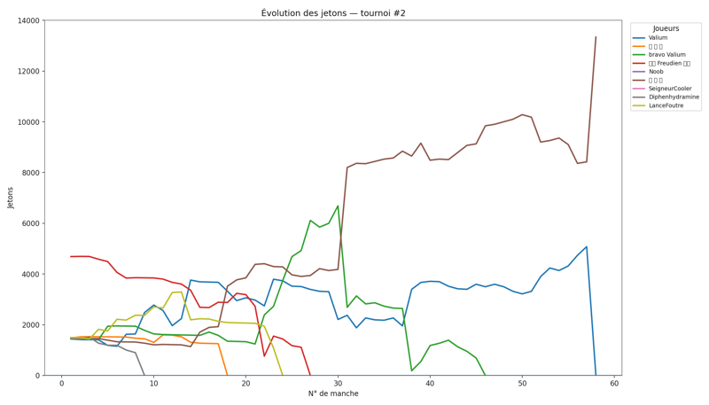 Plus grosse perte : Valium avec -5458 jetons (main n°58)
