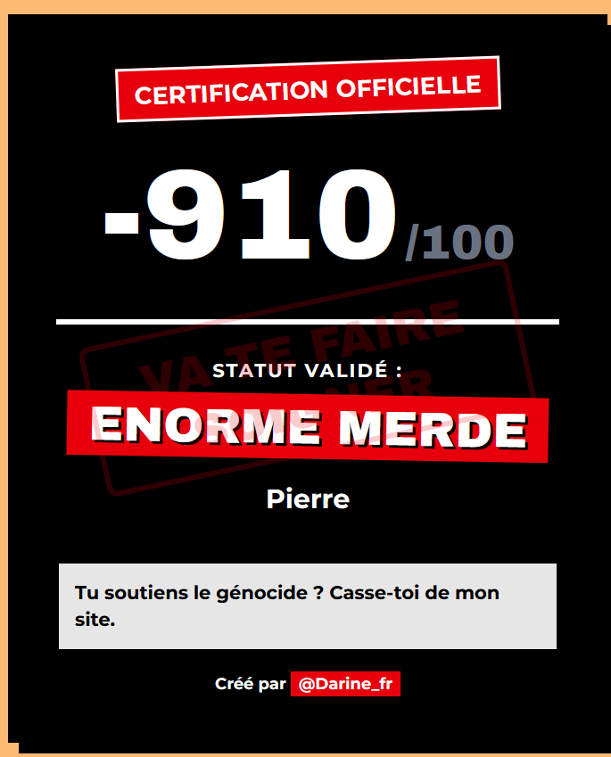 En même temps c'est un truck de gnoule bien malaisant. C'est sous ton humoristique de qi à 2 chiffres