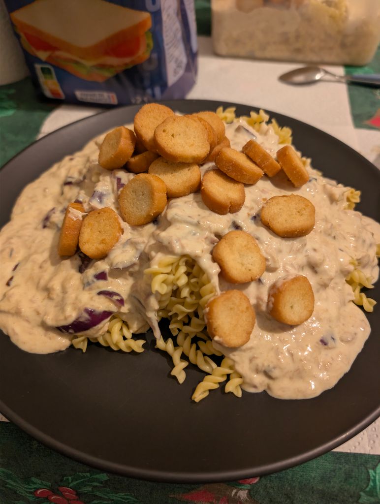 De l'autre côté tu chauffer tes pâtes , une fois chauffé tu mélange avec tes champignons tu rajoutes de la gorgonzola par dessus. Tu attends que ça fonde pour une sauce crémeuse et savoureuse sur tes pâtes