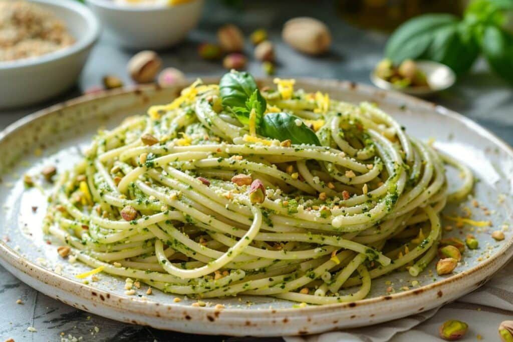 Pesto ( sauce pesto basilique pinions de pain poivre ail huile d'olive, parmesan )
