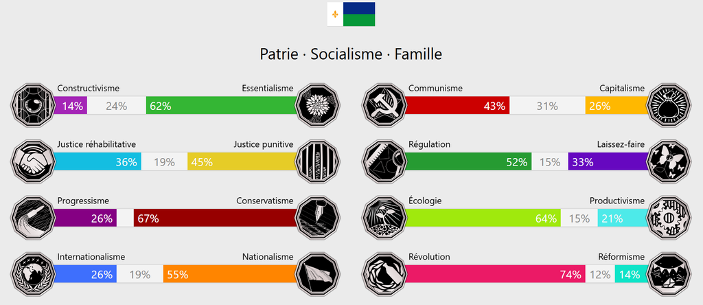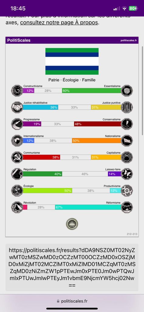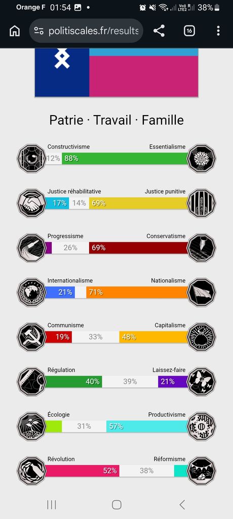 Les niveaux de communisme et régulationnisme m'ont fait gerber. Pour les reste on a les mêmes tendances mais je dois avoir tout en plus extrême (enfin de mémoire, pas fait depuis près de 10 ans ce truc)