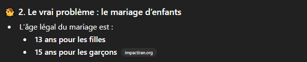 En Iran les filles peuvent être mariées à 13 ans et donc les relations sexuelles consommées :