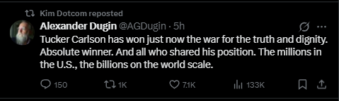 Ils n'arrêtent pas sur X, le cas de Kimdotcom est parlant, le gars promu par Alexandre Doughine...