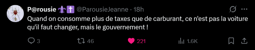 Ouai je rage, parcque la voiture est un truc de bourgeois en France. Ce sont littéralement des bourgeois qui demande à des prolo de leur financer leur lubis.