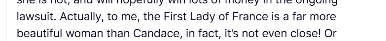 D’ailleurs, pour moi, la Première dame de France est bien plus belle que Candace, ce n’est même pas comparable ! (il n'y a pas match)