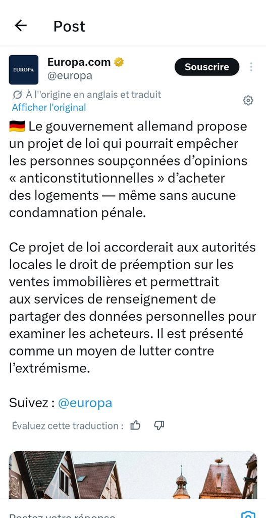 🚨🇩🇪 - Le gouvernement allemand veut empêcher les opposants politiques de se LOGER