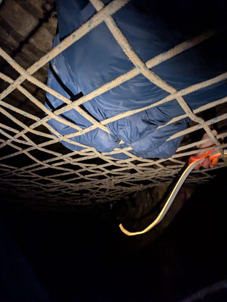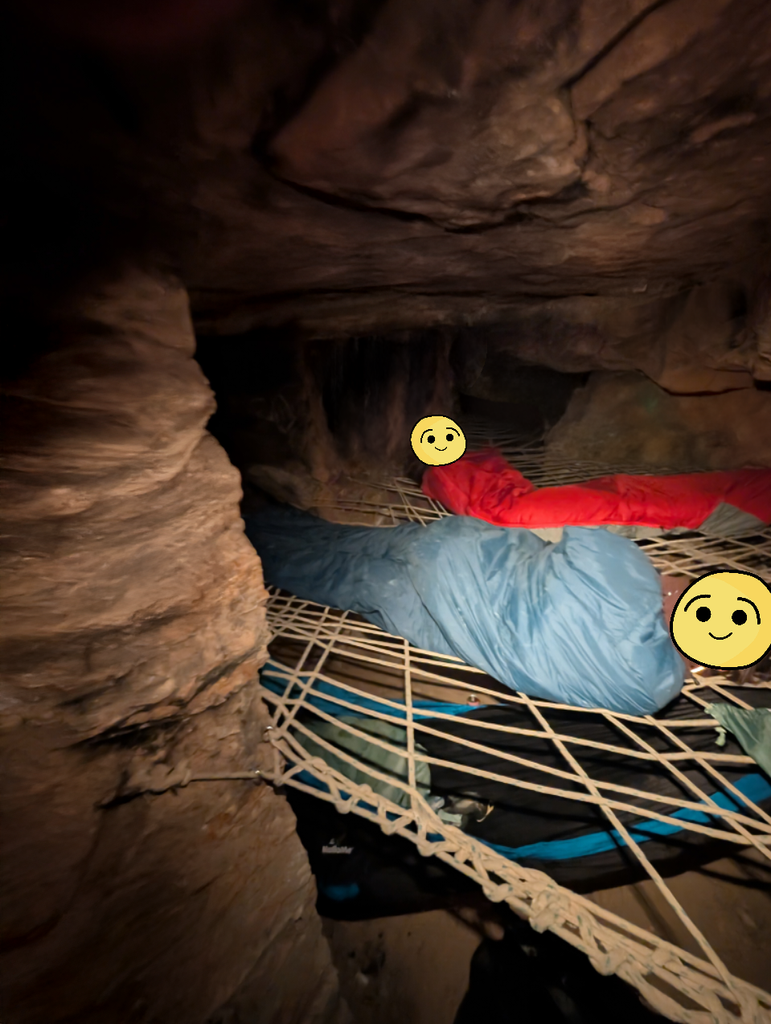 On a fait 48h de spéléo avec @socratelegolem et @cleamolette au moment de dormir j'avais la place du chien dans un hamac sous le fillet