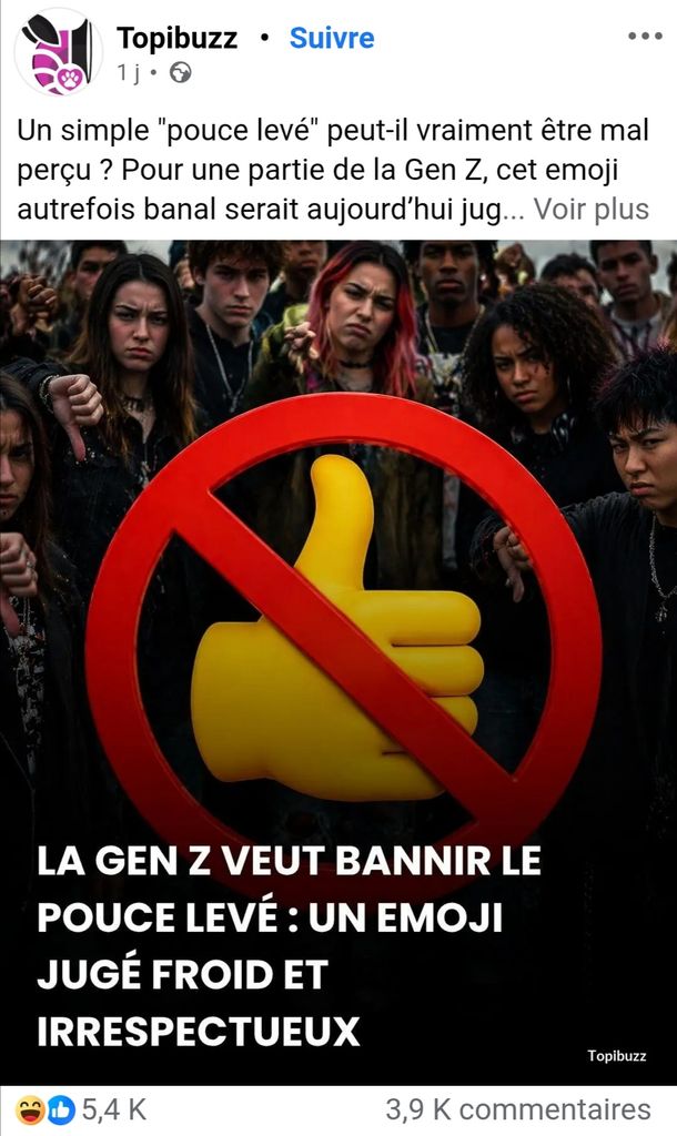 Je comprends pas ce boycott du pouce levé, autant ça peut faire boomer je suis d'accord, mais à quel moment c'est irrespectueux ou froid ?