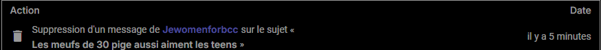 Conformément à l'article encadré sur les teen. Votre message n'est pas recevable. Veuillez développer sur les teen pour vous adapter au détraqué qu'est l'op.