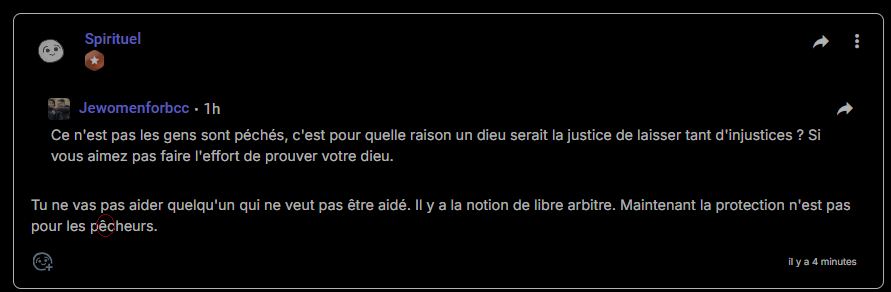 Tu ne vas pas aider quelqu'un qui ne veut pas être aidé. Il y a la notion de libre arbitre. Maintenant la protection n'est pas pour les pêcheurs.