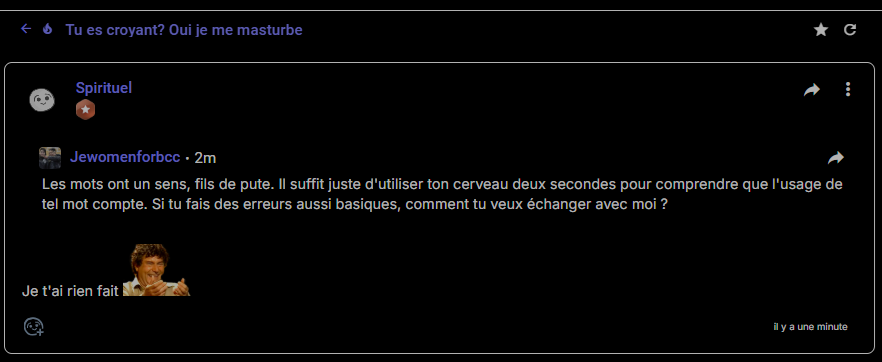 Ah ouais vla qu'on à affaire à un rageux doublé d'un pro en baston mtnant.