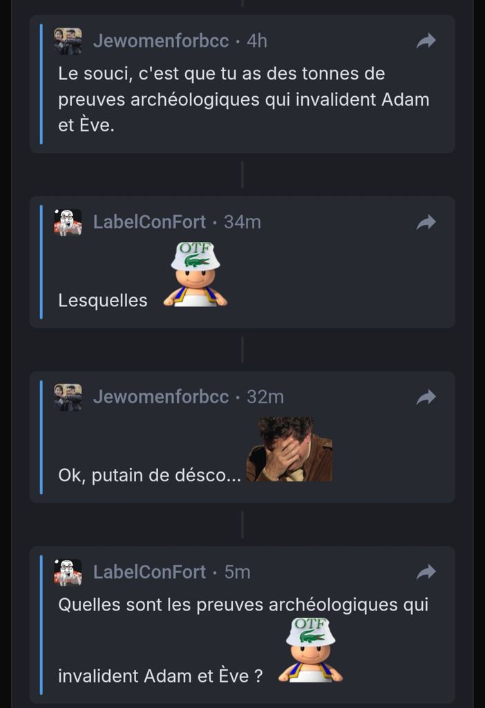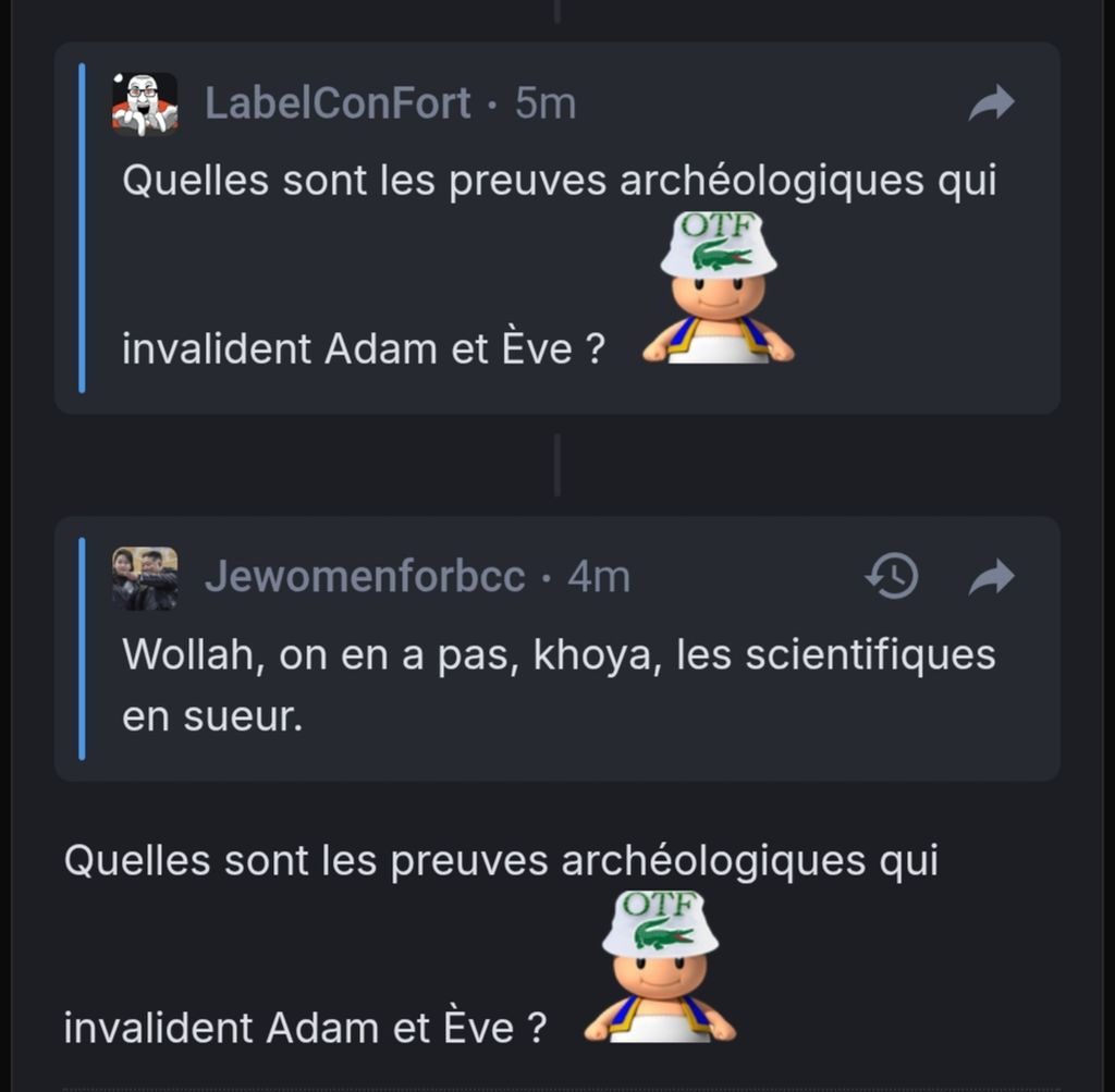 Mais wesh ? Les scientifiques ont zéro preuve, Adam, c'est tellement enseigné dans la géologie, archéologie, histoire des peuples. C'est tellement la vérité du couple originel, quoi.