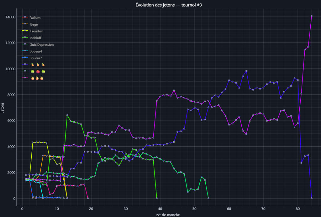 Plus grosse perte : 🍍 🍍 🍍 avec -6366 jetons (main n°81)