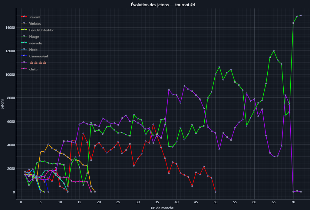 2ème : 🌰🌰🌰🌰 éliminé par Nuage avec Paire de As hauteur Valet contre Paire de Septs hauteur As à l'issue de la manche n°72