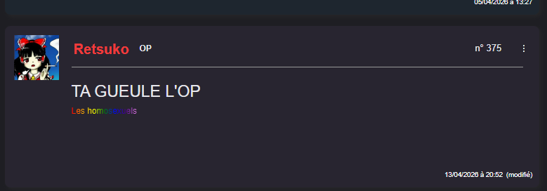 Ce forum n'a pas vocation de devenir une poubelle a BAV de Onche, ils ne sont pas la bienvenue.
