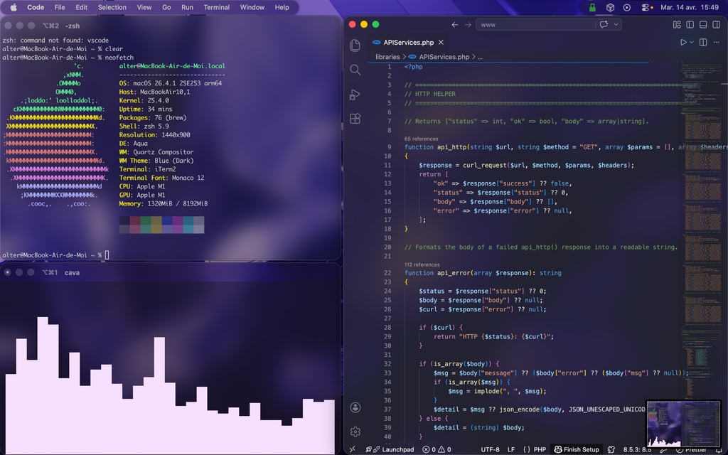 Pourquoi ne pas mettre vscode en plein écran vu qu'à gauche tu n'as qu'un truc inutiles avec des barres et un terminal que tu n'utilise pas ?