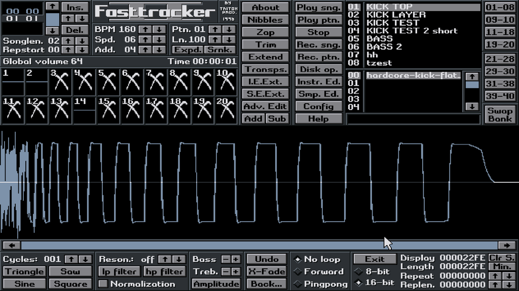 bon avec grok j'ai eu un resultat satisfaisant assez vite donc on passe sur le tracker, voici a quoi ressemble le kick généré sur fastTracker2