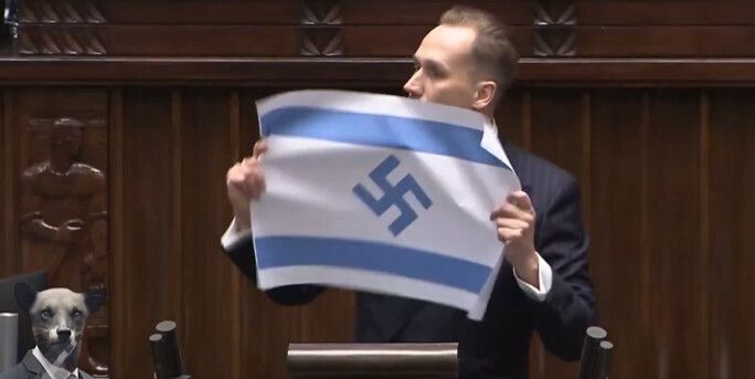 « Nouveau IIIe Reich » un député polonais d’extrême droite brandit un drapeau d’Israël frappé d’une croix gammée