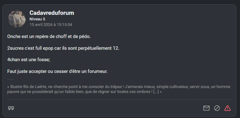 Un jvchien qui ose parler de pédophilie alors que les spammeurs pédo sont notoirement protégés par les admins sur leur site de détraqué, on aura tout vu