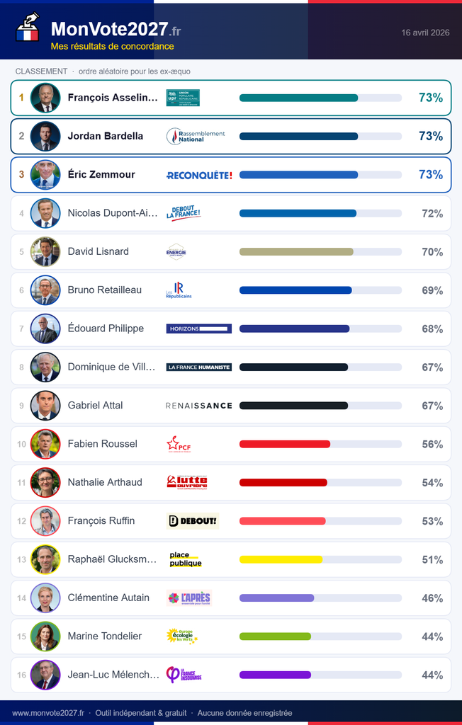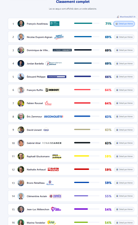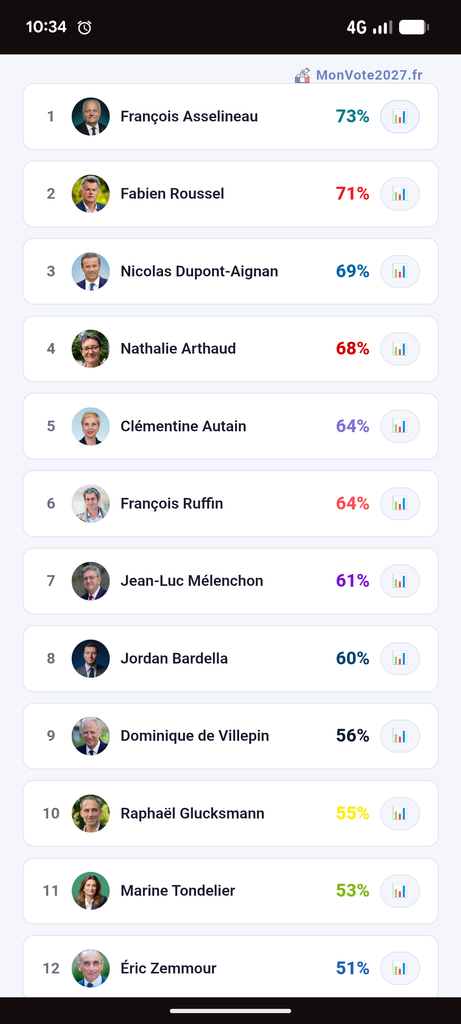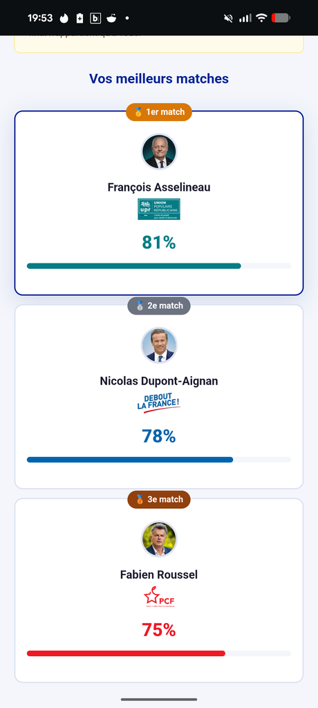 Asselineau c'est bien , étonnant qu'il soit pas dans mon top 5 je dois être moins proche de ses idées que ce que je pensais