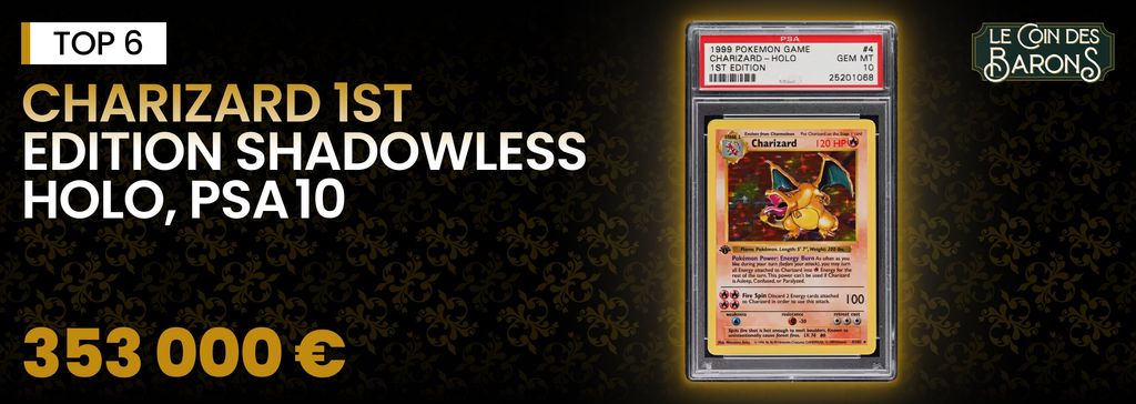 Charizard 1st Edition Shadowless Holo, PSA 10 – 353 000 €