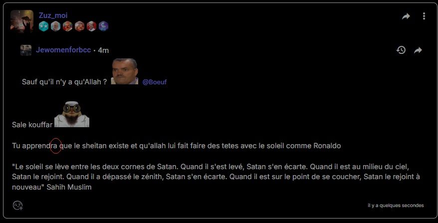 Tu apprendra que le sheitan existe et qu'allah lui fait faire des tetes avec le soleil comme Ronaldo