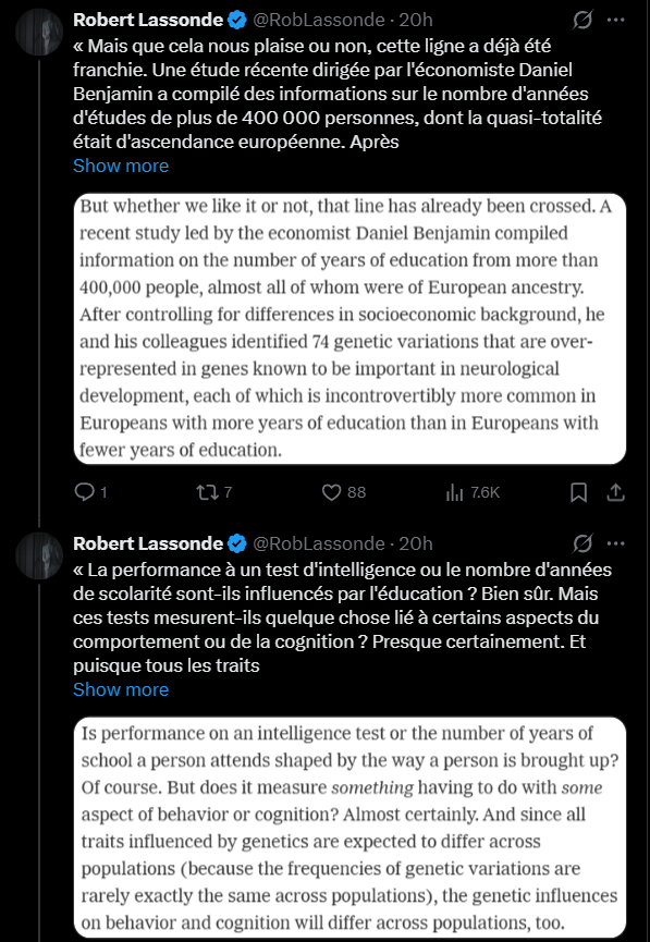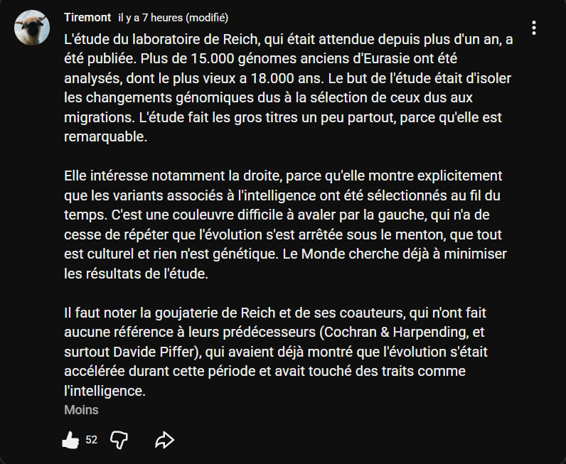 Petit bonus : Ce sujet est clairement très important pour ceux qui ne mesurent pas bien l'importance de cette étude, Pierre de Tiremont de Radio Athéna (Team Lesquen) en a fait un post sur Youtube :