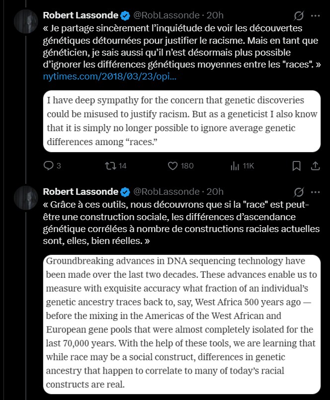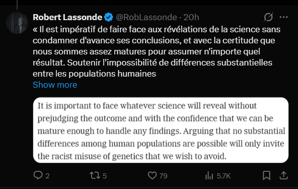 Nier ces faits pour maintenir l'illusion d'une intégration possible face à l'immigration de masse et continuer d'entretenir des mythes comme celui du racisme systémique est désormais un déni de science pur et simple. Une civilisation qui ignore la réalité biologique se condamne à l’effondrement. Le temps des faits est arrivé.