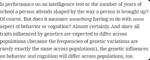 Trust the data not the scientist. Reich est peut etre raciste, mais ca n'est pas appuyer par ses travaux, il a le droit d'avoir ses opinions.
