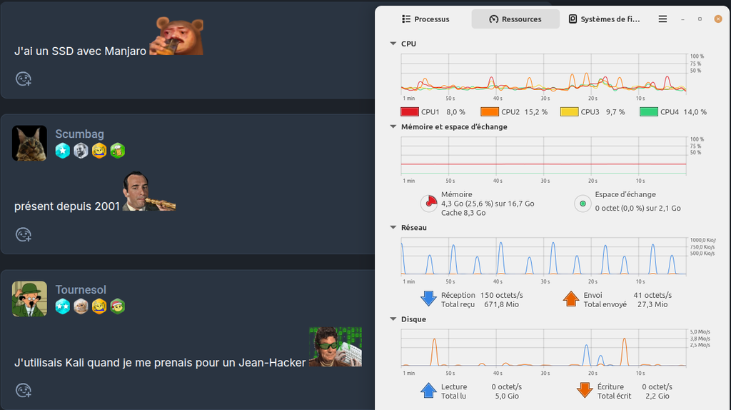 J'ai testé plein de distrib, Ubuntu, Debian, Slackware, Tails, Kali, Arch, bunsen lab, Manjaro (distrib actuel)