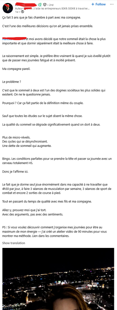 Après il a pas tort, y'a certaines meufs super relou quand tu dors avec elle : elles bougent dans tous les sens, elles ronflent, elles se collent à toi en été et tu te réveille en sueur au beau milieu de la nuit.